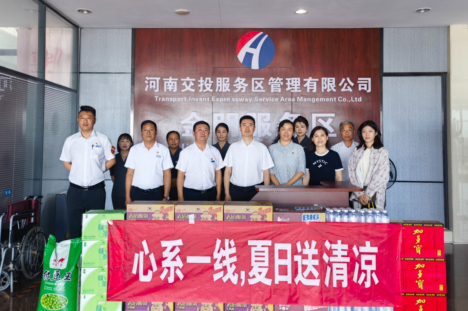 公司黨委委員、副總經理張帥到金明服務區講授黨課并開展“夏日送清涼”慰問活動