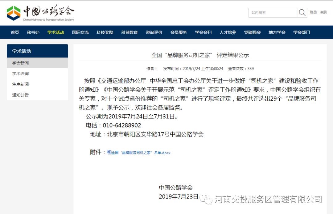 安陽服務(wù)區(qū)“司機(jī)之家”被評為2019年全國“品牌服務(wù)司機(jī)之家”