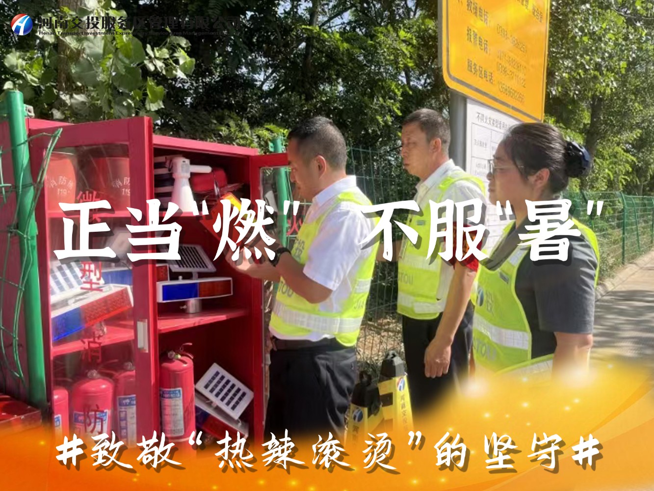 近日,滾滾熱浪席卷著中原大地,我省持續出現38℃以上高溫極端天氣,地表溫度直逼50℃,在這樣惡劣的環境下,一場時間與高溫的較量正在公司服務區上演,服務區廣大一線員工用汗水詮釋著服務初心,用行動書寫責任與擔當,以實際行動為司乘人員平安健康出行保駕護航。